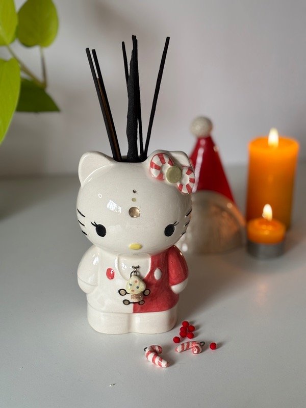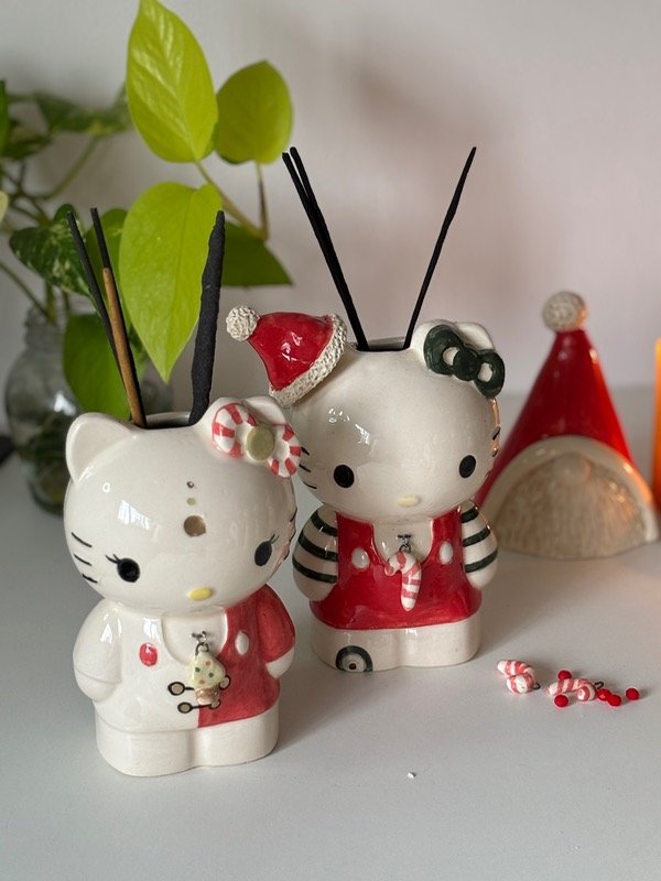 LLEGÓ HELLO KITTY NAVIDEÑA 🎄🎅(tiene hueco en la cabecita para ponerle lo que quieras) sahumerio / flores 🌷