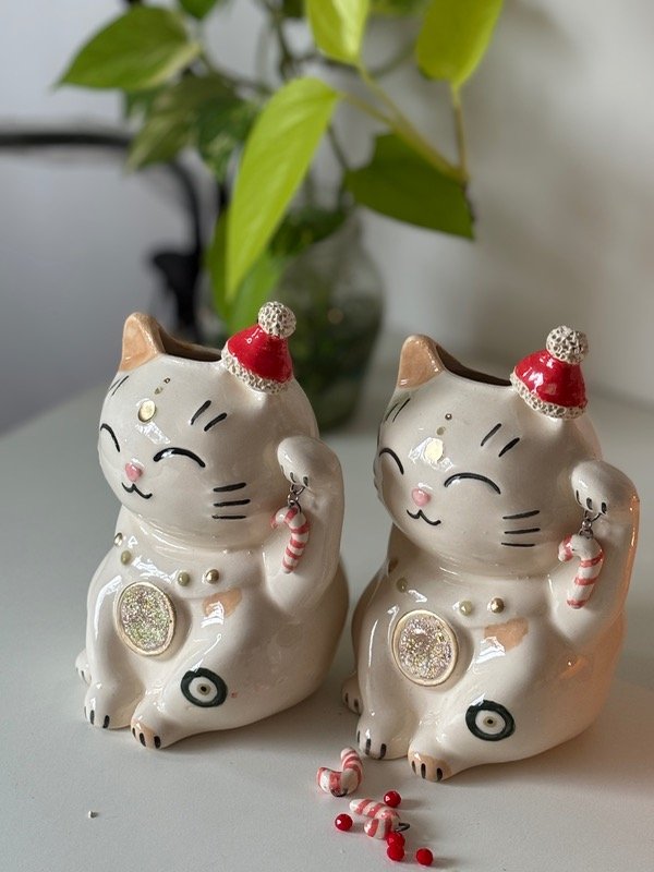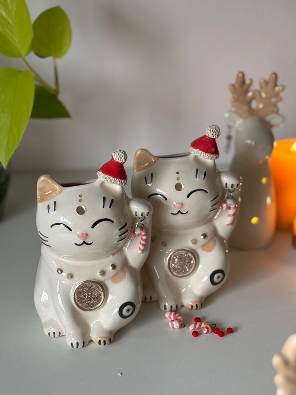 GATITO DE LA SUERTE NAVIDEÑO 🎄🎅(tiene hueco en la cabecita para ponerle lo que quieras) sahumerio / flores 🌷